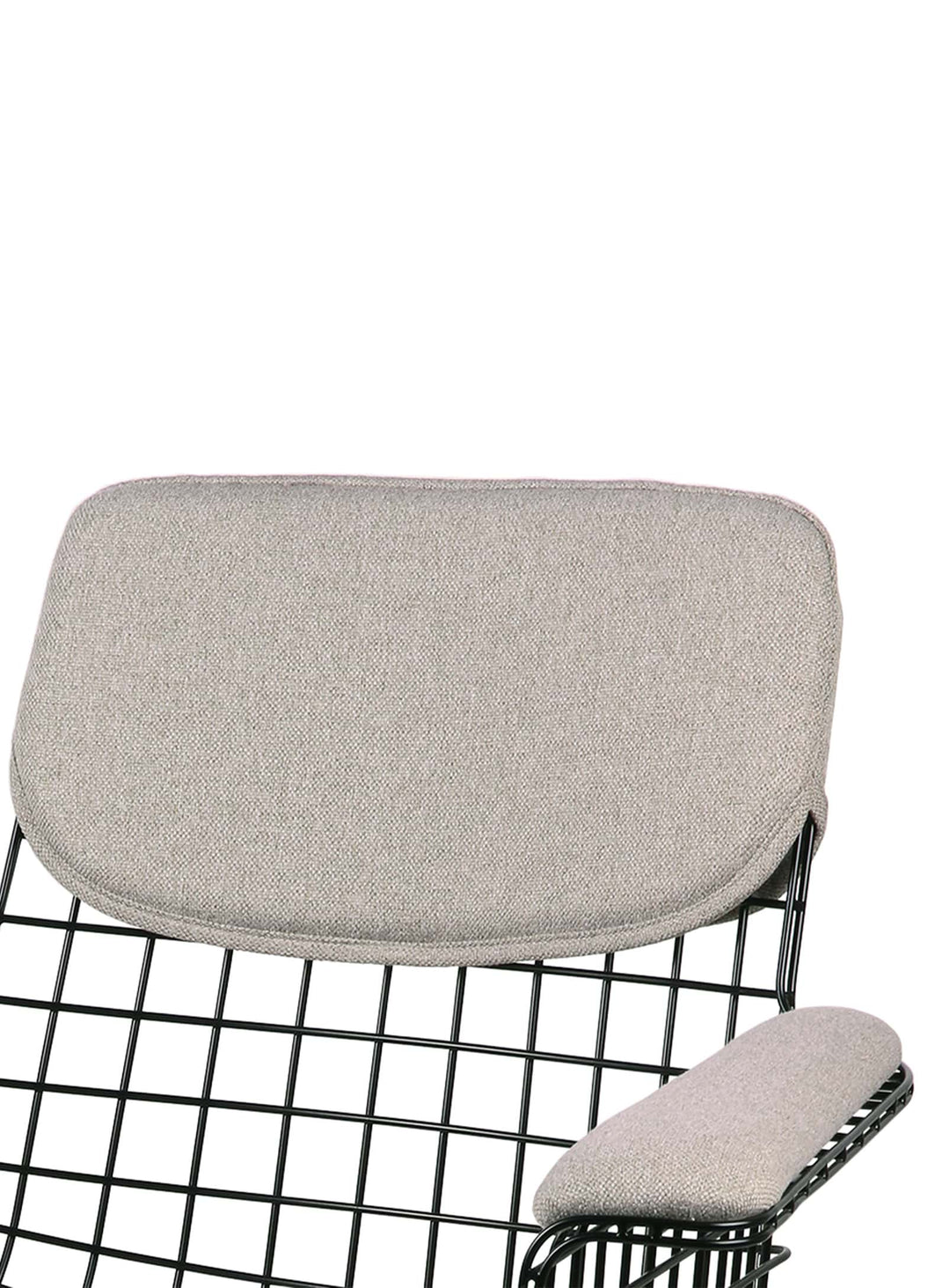 Coussins sur mesure pour chaise Wire avec accoudoirs : confort, maintien et style. Gris clair.