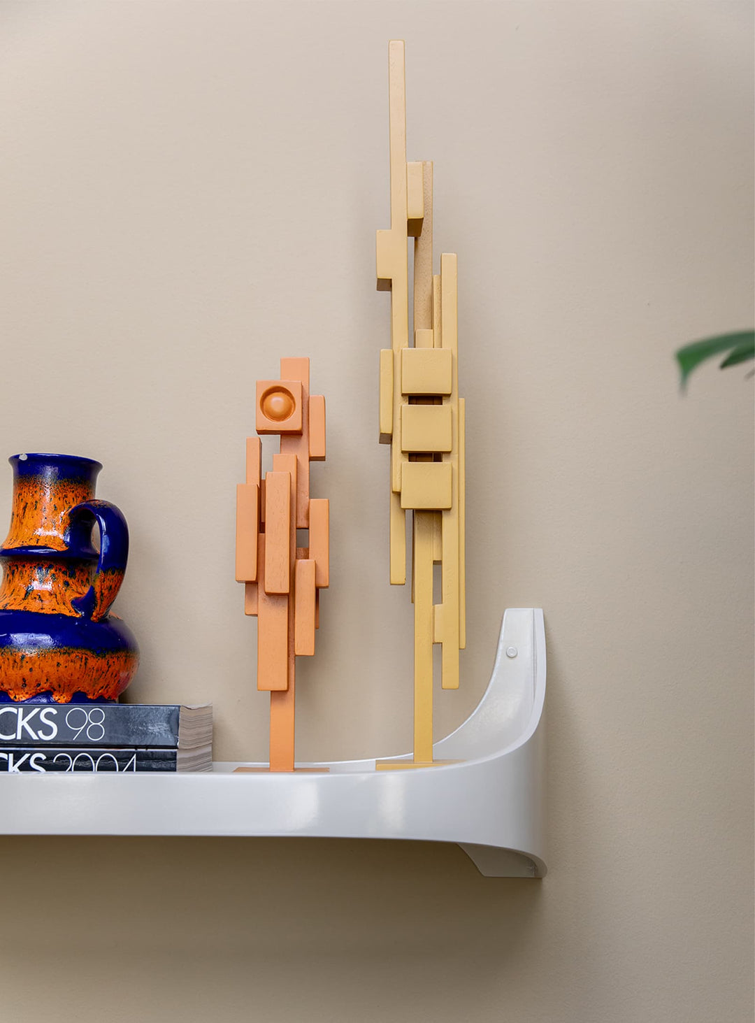 Pensées autant pour la forme que pour la fonction, ces étagères offrent une surface généreuse, à la fois en largeur et en profondeur, vous permettant de créer des compositions libres et expressives sans contrainte d’espace. Qu’il s’agisse de livres, de cadres, de vases ou de petits souvenirs, chaque objet trouve naturellement sa place tout en étant maintenu en sécurité grâce au rebord délicatement relevé.