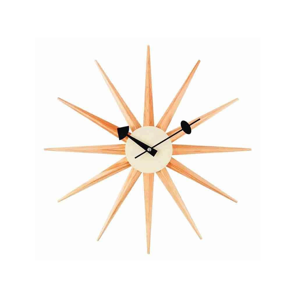 Reproduction Sunburst, horloge murale, en bois et métal, bouleau