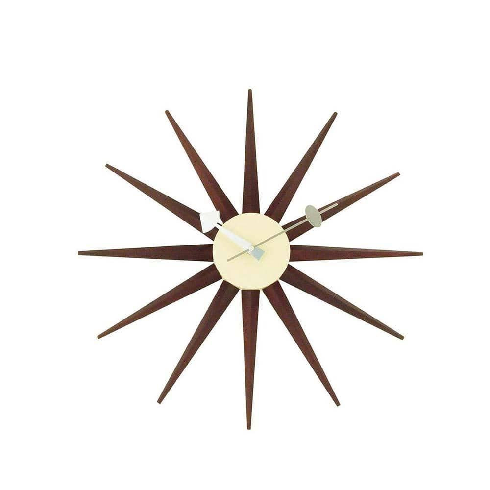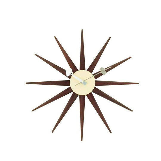 Reproduction Sunburst, horloge murale, en bois et métal, noyer