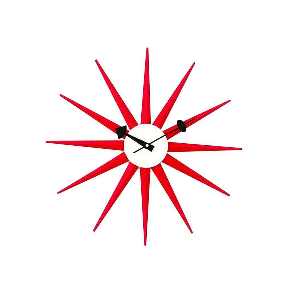 Reproduction Sunburst, horloge murale, en bois et métal, rouge