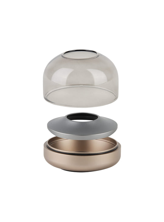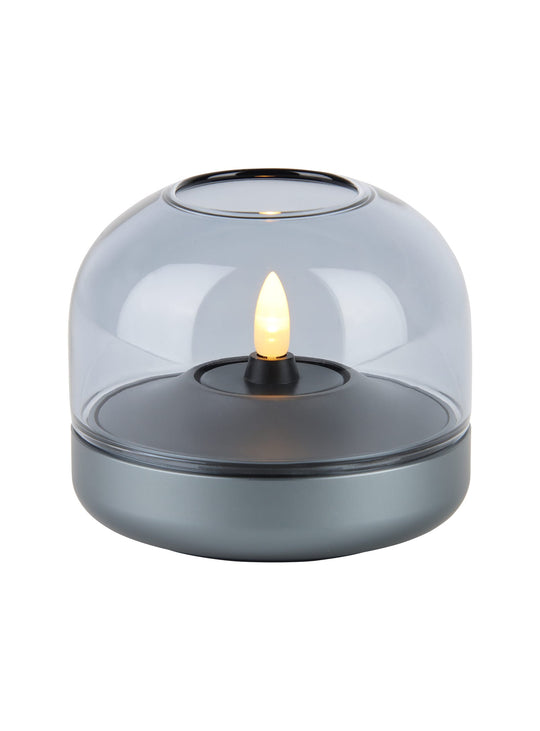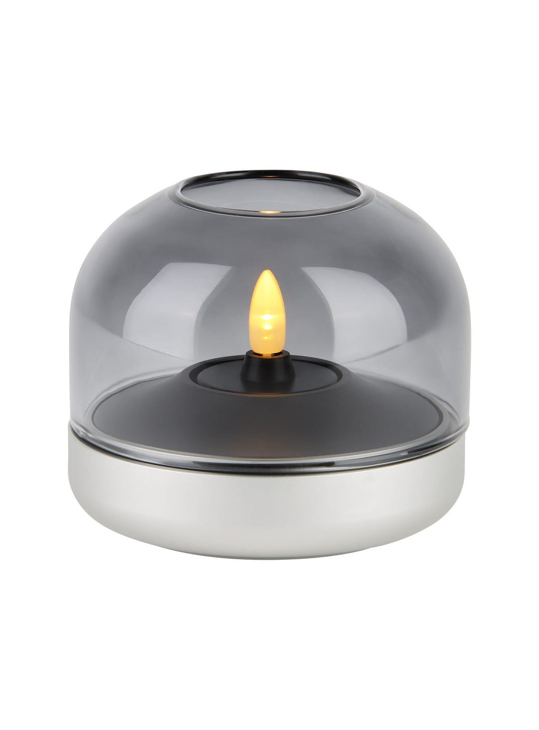 Glow 08 de Kooduu : une bougie LED sophistiquée et pratique, idéale pour l’intérieur comme l’extérieur. Rechargeable et durable. Gris argenté