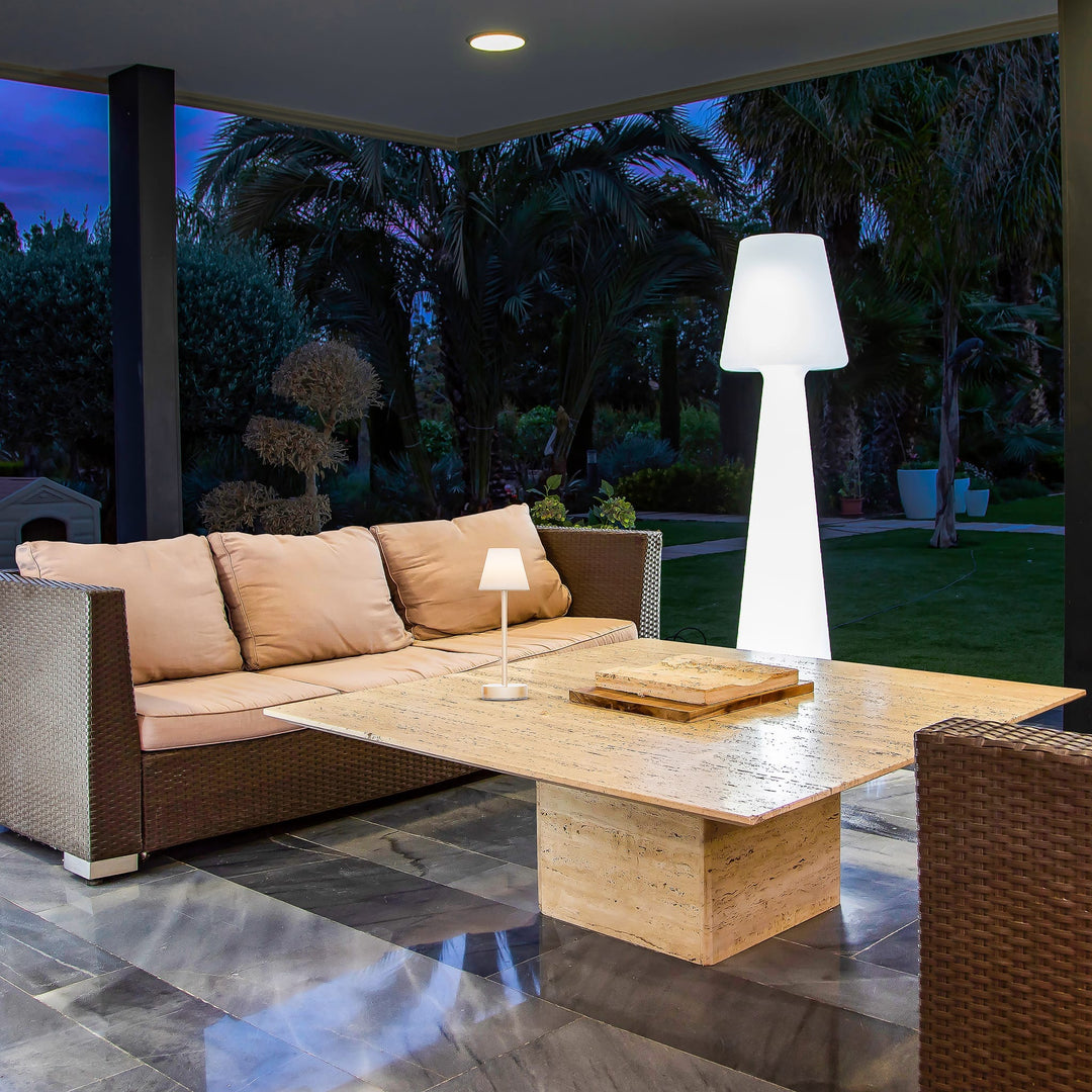 Lampe sur pied Lola 165 de Newgarden : design élégant, LED, télécommande, polyéthylène. Idéale pour illuminer vos espaces extérieurs.