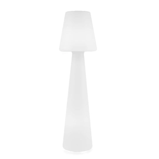 Lampe sur pied Lola 165 de Newgarden : design moderne, LED, télécommande, polyéthylène blanc. Élégance et durabilité pour votre éclairage extérieur.