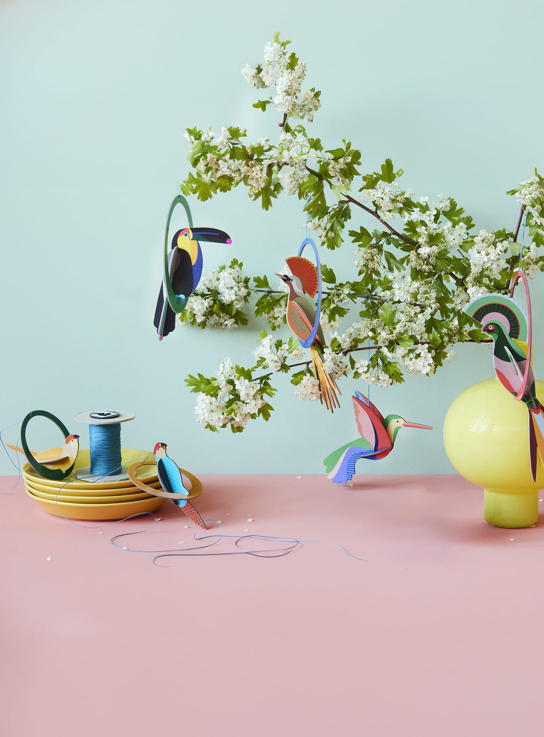 Parmi les plus belles créations de Studio Roof, on trouve une vaste collection de scarabées, de papillons, d'oiseaux, d'animaux marins, ainsi que des ornements pour le sapin de Noël, des mobiles pour bébés, et même des bouquets et fleurs inspirés des grands artistes. La marque célèbre la nature sous toutes ses formes, en l’intégrant au cœur de ses projets, ce qui en fait une véritable source d'inspiration et de poésie.