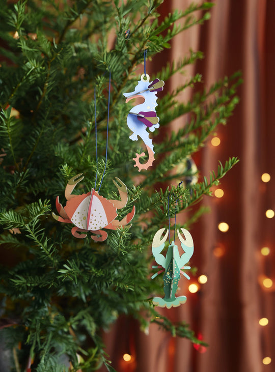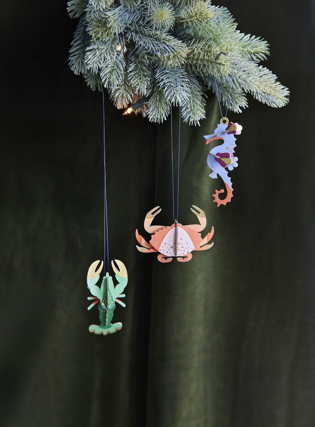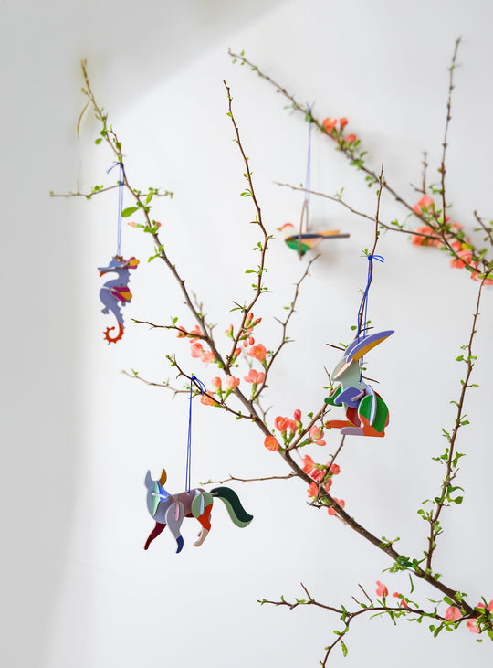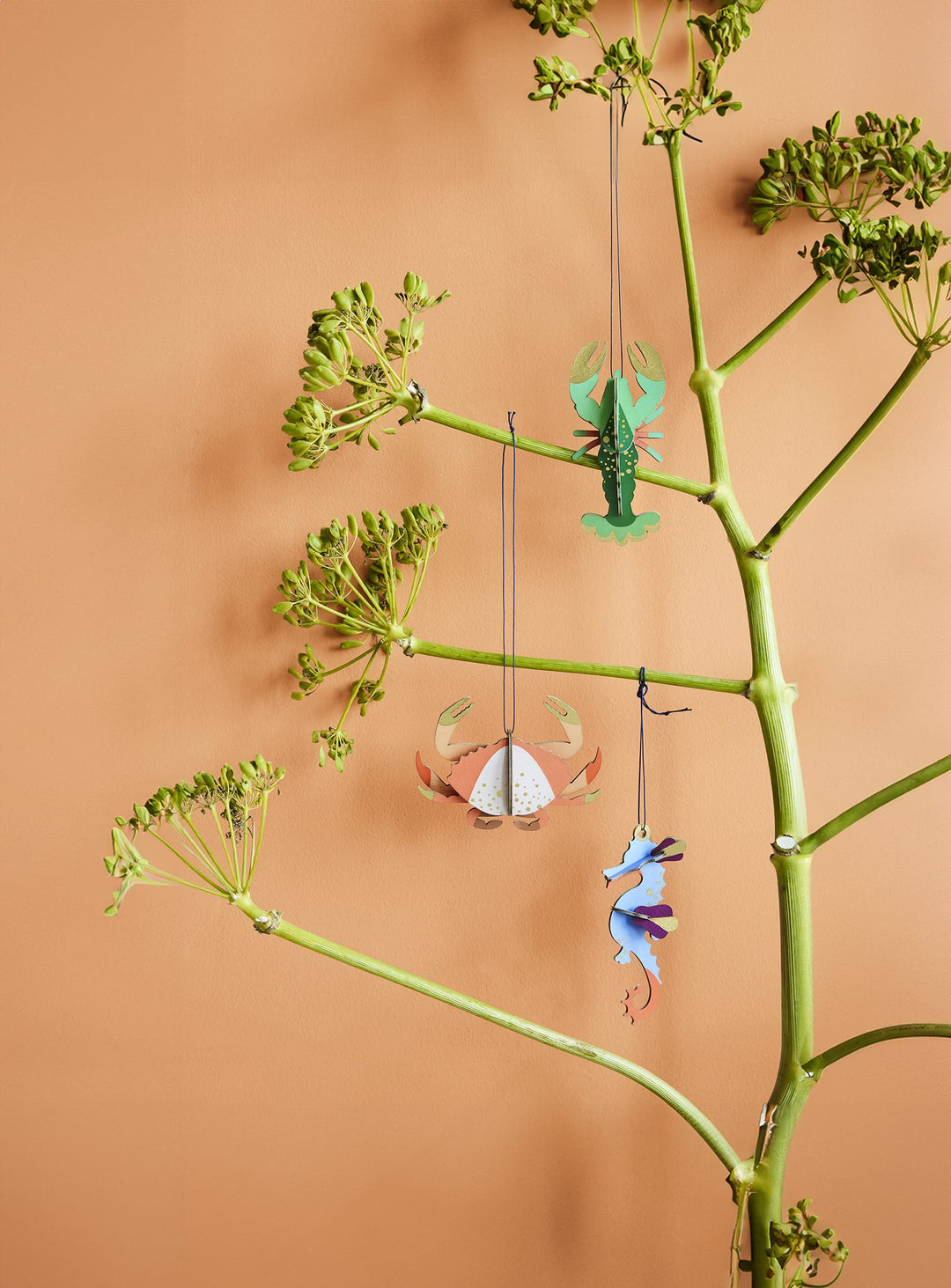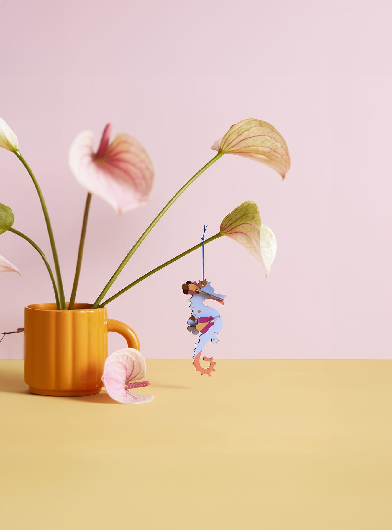 Décorez avec l’hippocampe bleu 3D de Studio Roof, un ornement écologique en carton qui évoque la beauté des fonds marins.