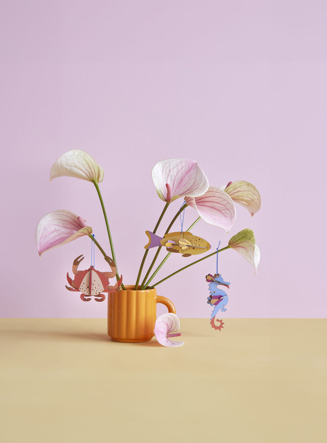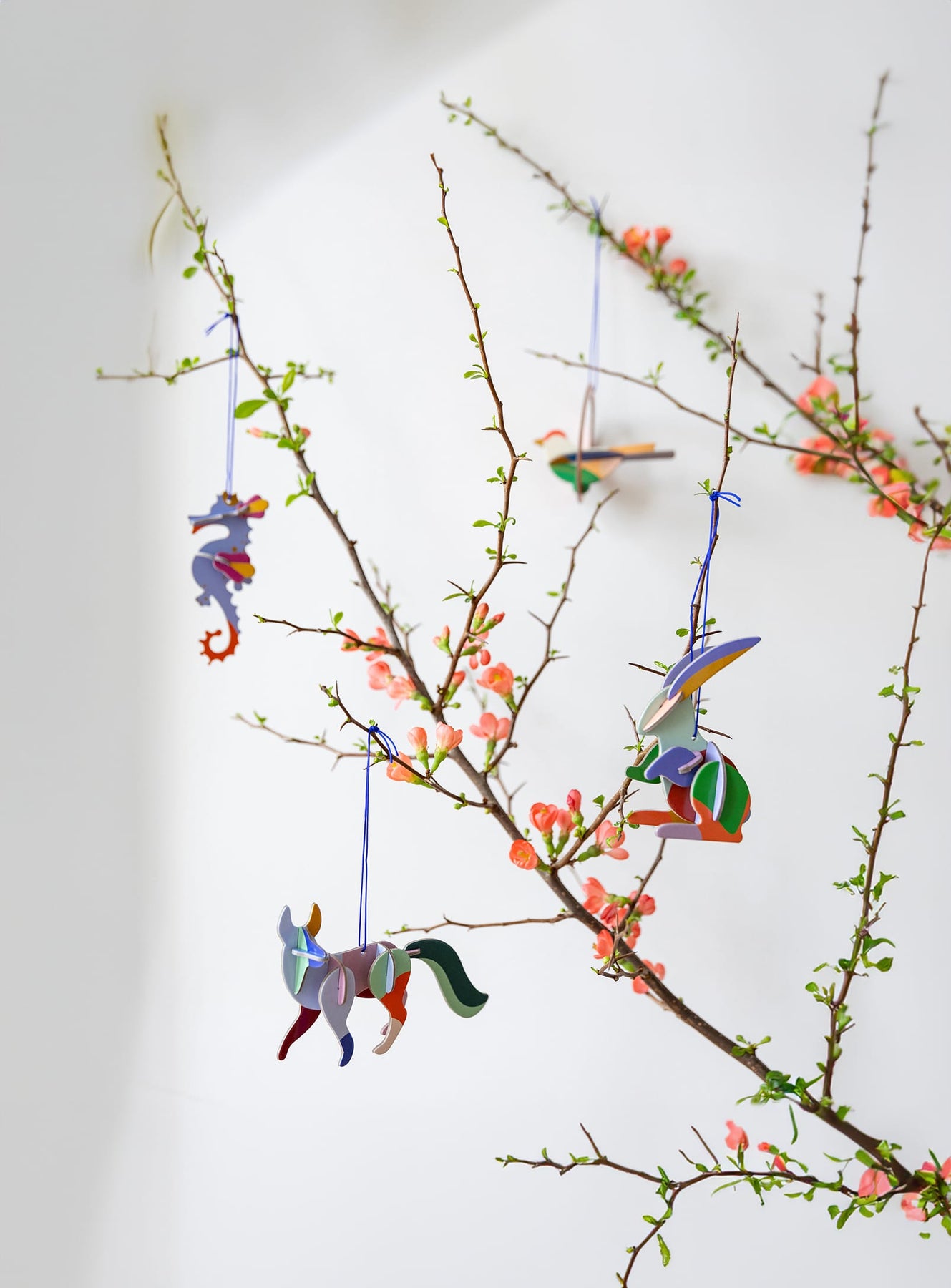 Parmi les plus belles créations de Studio Roof, on trouve une vaste collection de scarabées, de papillons, d'oiseaux, d'animaux marins, ainsi que des ornements pour le sapin de Noël, des mobiles pour bébés, et même des bouquets et fleurs inspirés des grands artistes. La marque célèbre la nature sous toutes ses formes, en l’intégrant au cœur de ses projets, ce qui en fait une véritable source d'inspiration et de poésie.