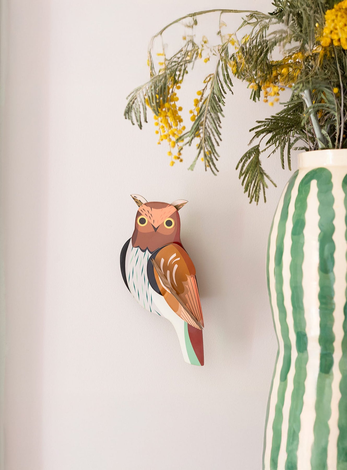 Décoration 3D colorée inspirée de l’oiseau nocturne emblématique