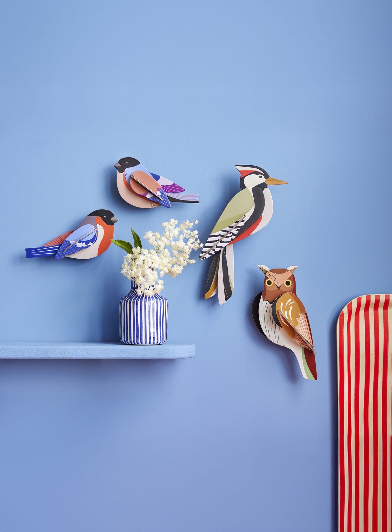 Parmi les plus belles créations de Studio Roof, on trouve une vaste collection de scarabées, de papillons, d'oiseaux, d'animaux marins, ainsi que des ornements pour le sapin de Noël, des mobiles pour bébés, et même des bouquets et fleurs inspirés des grands artistes. La marque célèbre la nature sous toutes ses formes, en l’intégrant au cœur de ses projets, ce qui en fait une véritable source d'inspiration et de poésie.