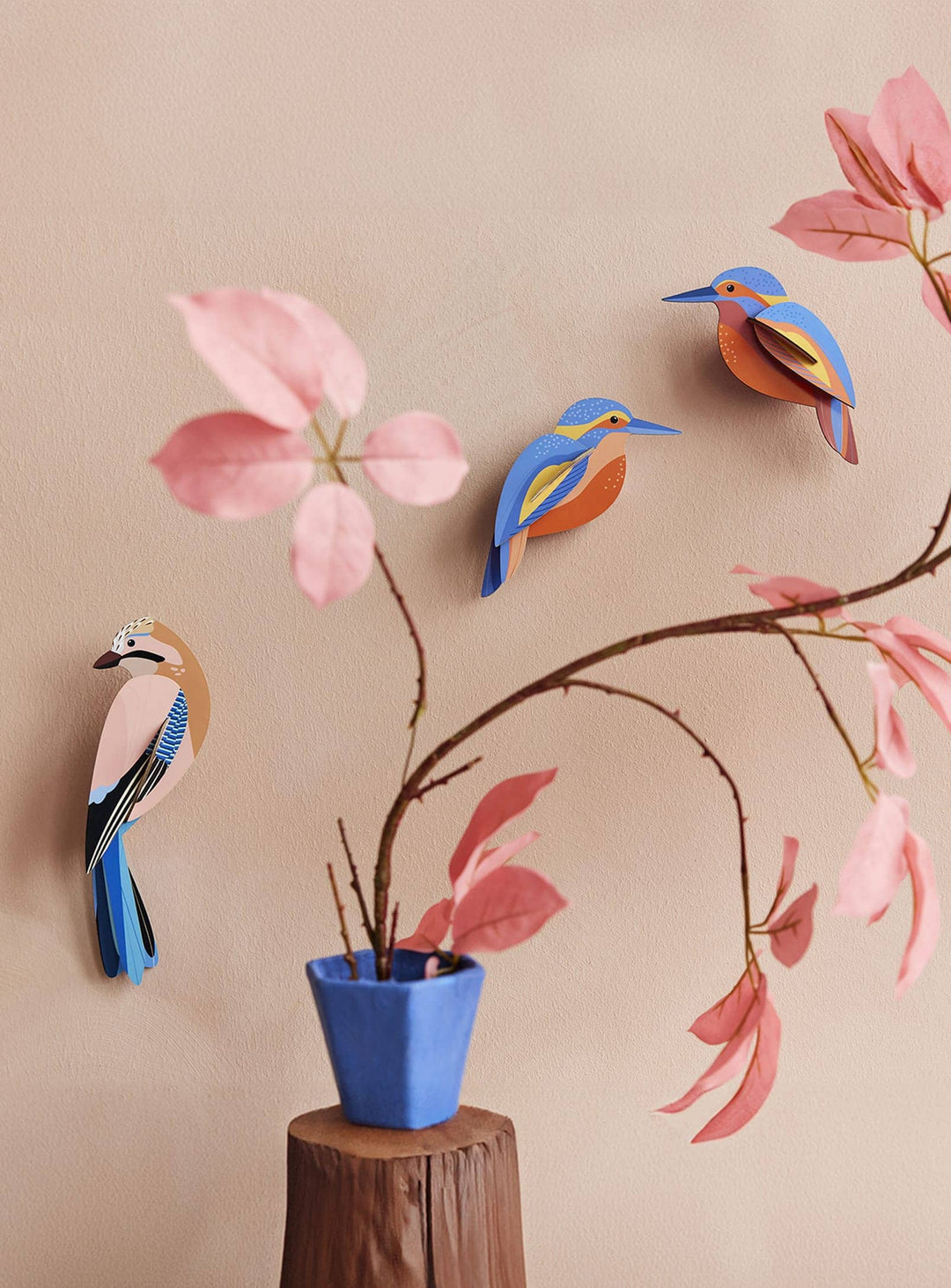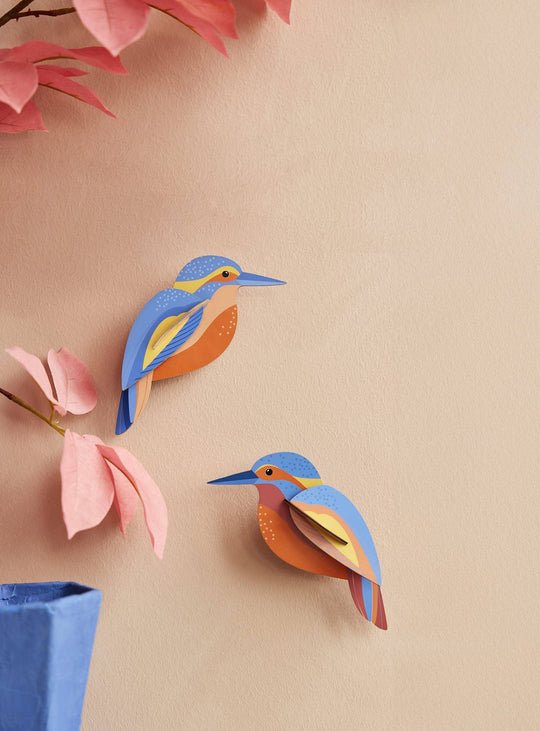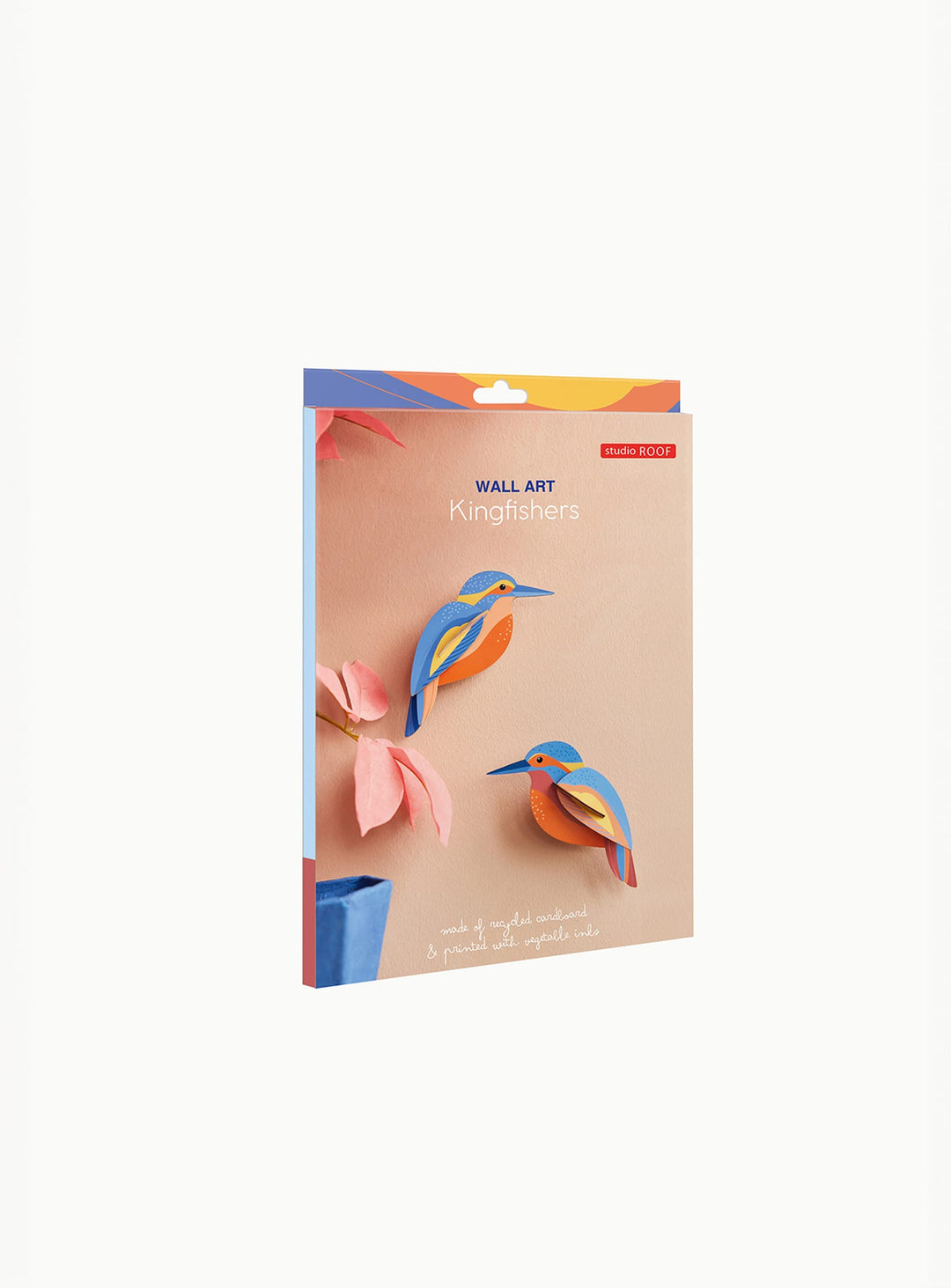 Fabriqués à partir de carton recyclé et imprimés avec des encres végétales respectueuses de l’environnement, ces martins-pêcheurs témoignent de l’engagement de Studio Roof envers un design durable. Alliant esthétique et responsabilité écologique, ils offrent une décoration murale unique et inspirante.