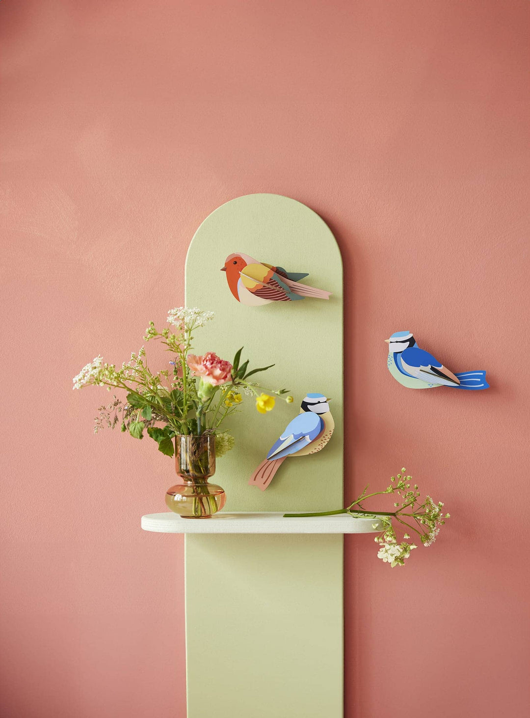 Offrez une touche joyeuse à votre décoration avec les mésanges bleues de Studio Roof, fabriquées à partir de matériaux écologiques.
