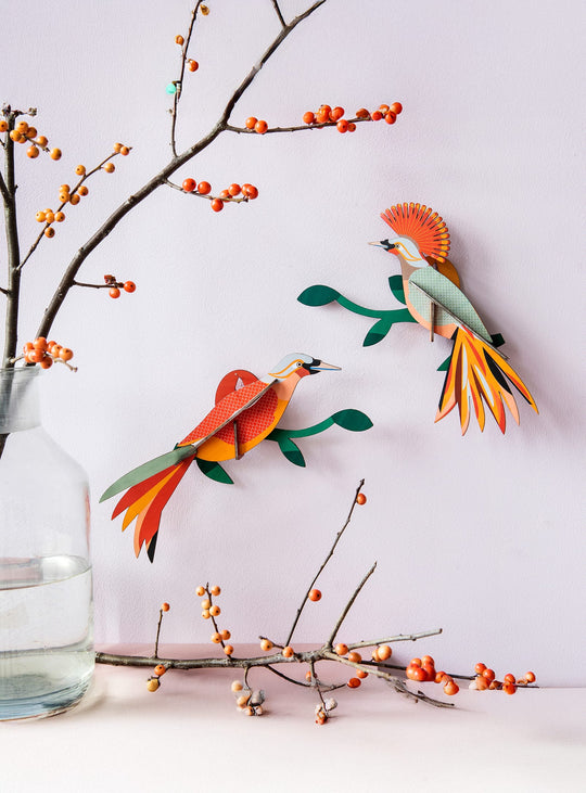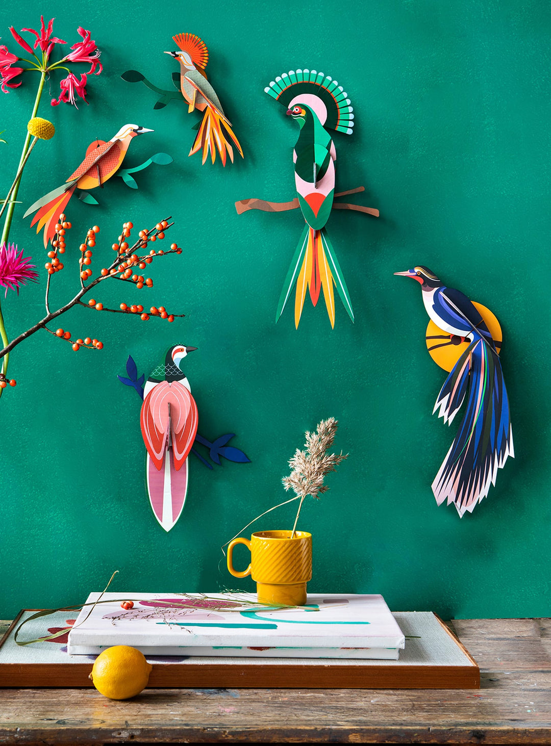 Obi Studio Roof : oiseaux 3D muraux en carton recyclé, colorés et faciles à assembler.