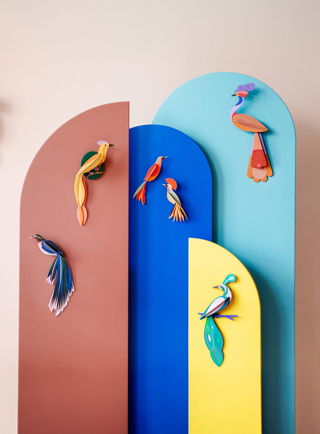 Les oiseaux Obi de Studio Roof : déco murale 3D éclatante, poétique et durable.