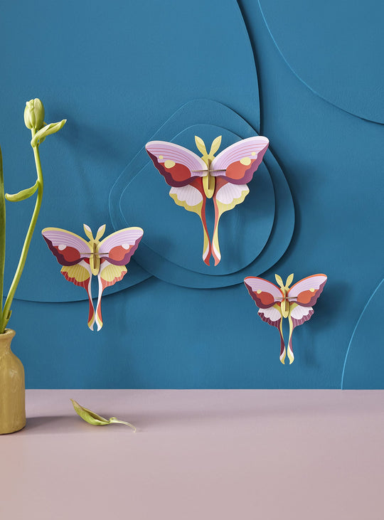 Ces papillons en 3D sont fabriqués à partir de carton recyclé et imprimés avec des encres végétales, ce qui les rend non seulement esthétiquement remarquables, mais également respectueux de l'environnement. Livrés à plat pour plus de commodité, ils sont faciles à assembler, vous permettant de rapidement créer une œuvre d'art murale dynamique et pleine de vie. Une fois assemblé, le plus grand papillon mesure 19 x 8 x 20,5 cm (7,5" x 3,1" x 8"), apportant une présence visuelle saisissante à votre décor.
