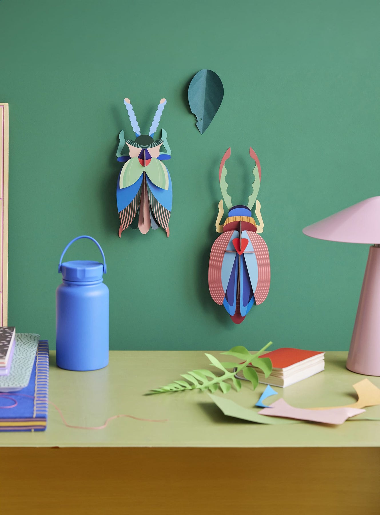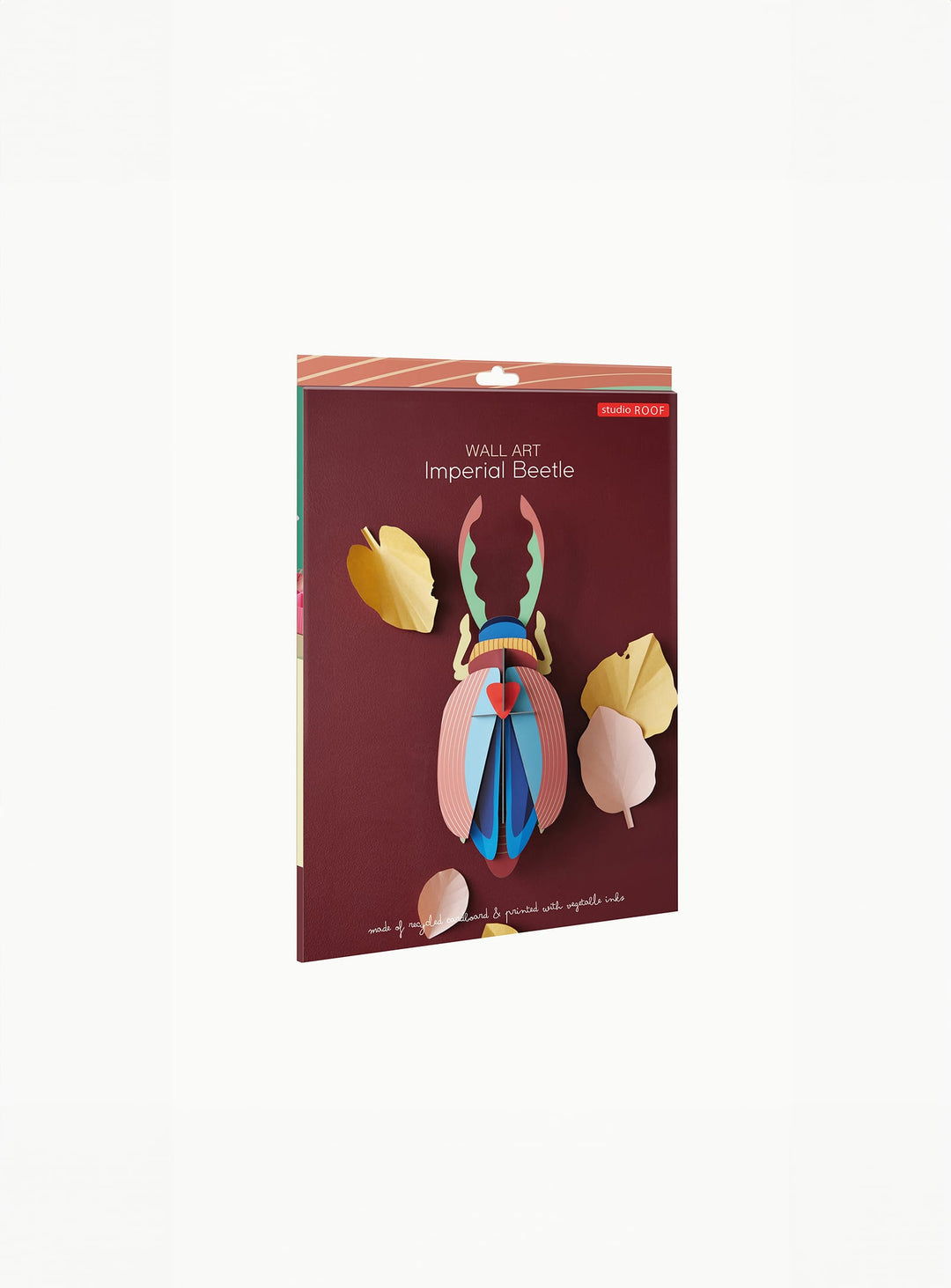 Ce scarabée impérial de Studio Roof, en carton recyclé, est un ornement 3D vibrant et écologique, idéal pour embellir vos murs.