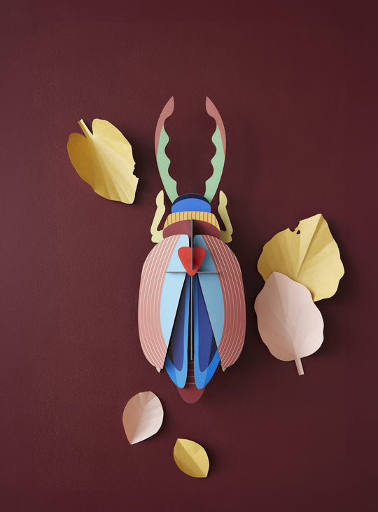 Sublimez votre intérieur avec le scarabée impérial 3D de Studio Roof, en carton recyclé et encres végétales. Une décoration écoresponsable et artistique.