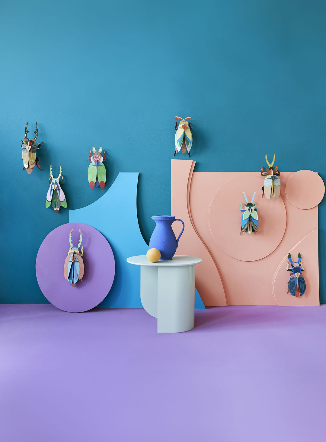 Fabriqué en carton recyclé, le scarabée impérial de Studio Roof est une œuvre décorative 3D vibrante et respectueuse de l'environnement.