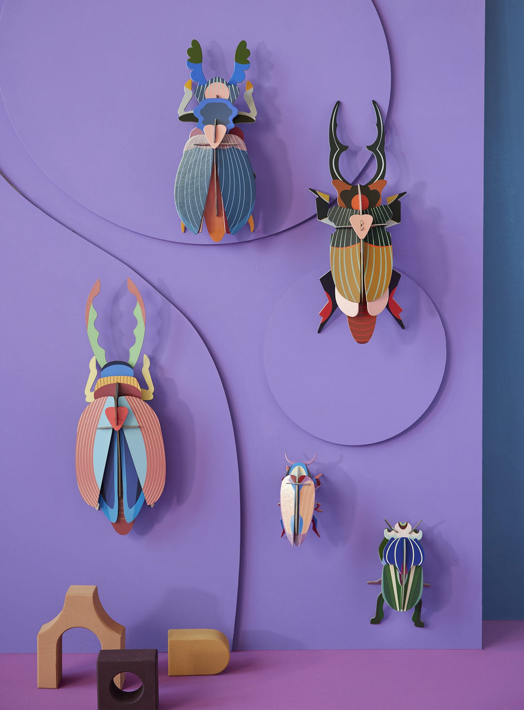 Le scarabée impérial de Studio Roof : un ornement 3D en carton recyclé, alliant écologie et design artistique pour une décoration murale éclatante.