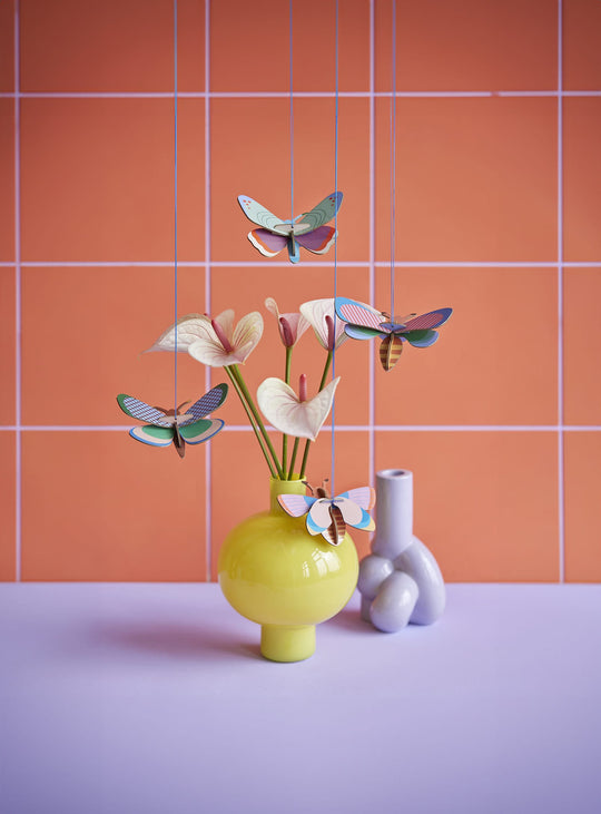 Fabriqué à partir de carton recyclé et imprimé avec des encres végétales, ce papillon respecte l'environnement tout en affichant une esthétique captivante. Grâce à sa conception écologique et durable, il constitue un choix parfait pour ceux qui souhaitent intégrer des éléments décoratifs respectueux de la planète dans leur quotidien.