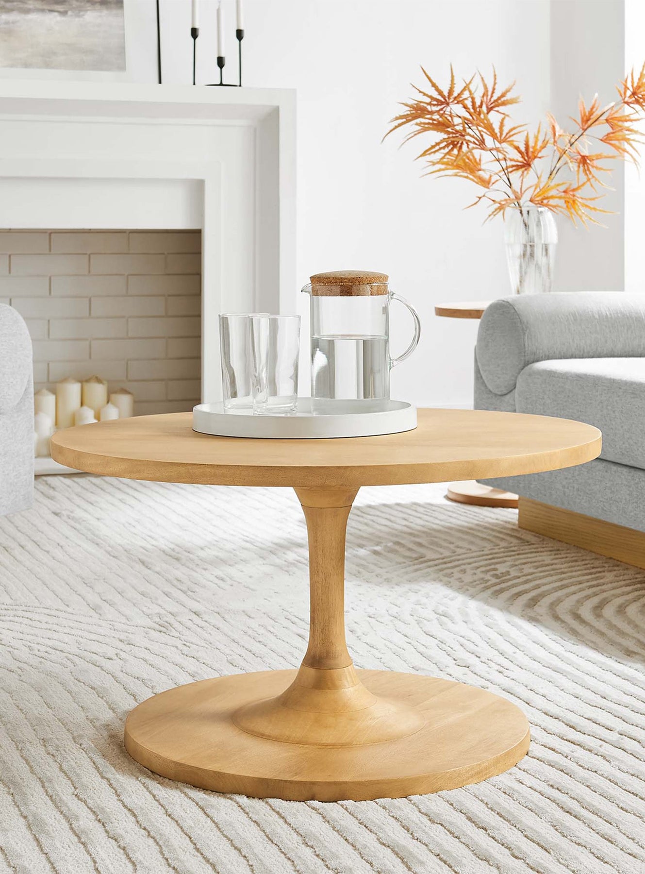 Le bois de manguier massif confère à la table à café une solidité et une durabilité exceptionnelles, tout en mettant en valeur les variations subtiles du grain de bois. Les lignes courbées et épurées, combinées à une élégante base à piédestal conique, ajoutent une dimension esthétique à la fois moderne et accueillante. Ce design polyvalent s'intègre parfaitement dans les décors traditionnels et contemporains.