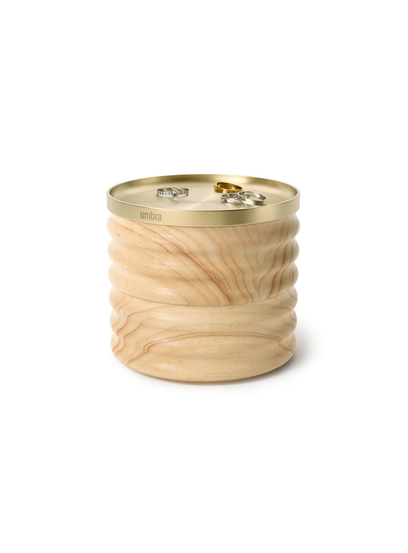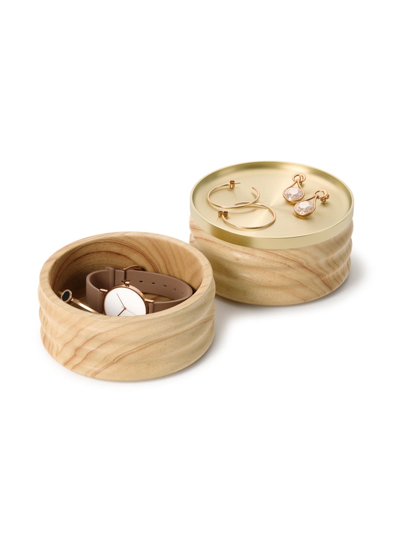 Tesora d'Umbra : boîte à bijoux empilable au design bois-métal, pratique et élégante. Naturel.