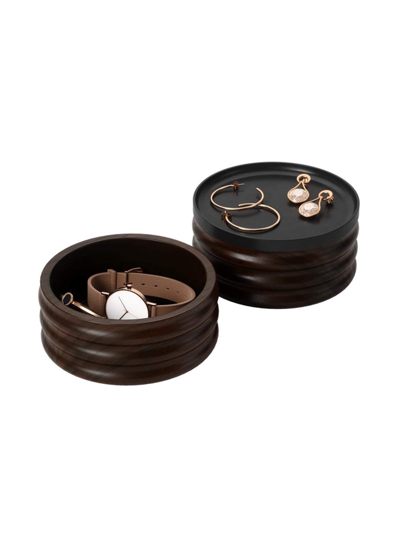 Boîte Tesora d’Umbra : 2 compartiments empilables et couvercle-plateau raffiné. Noyer.