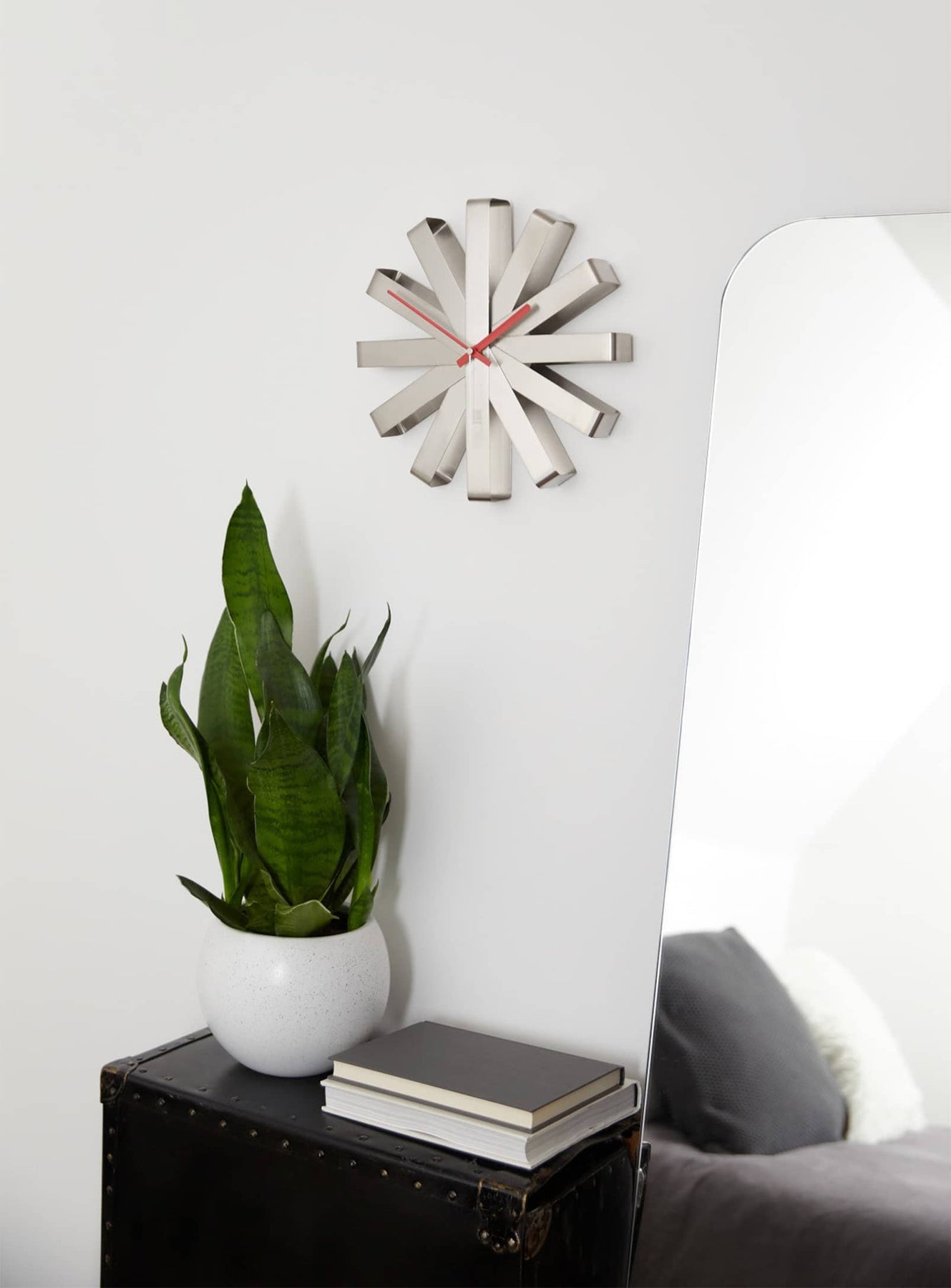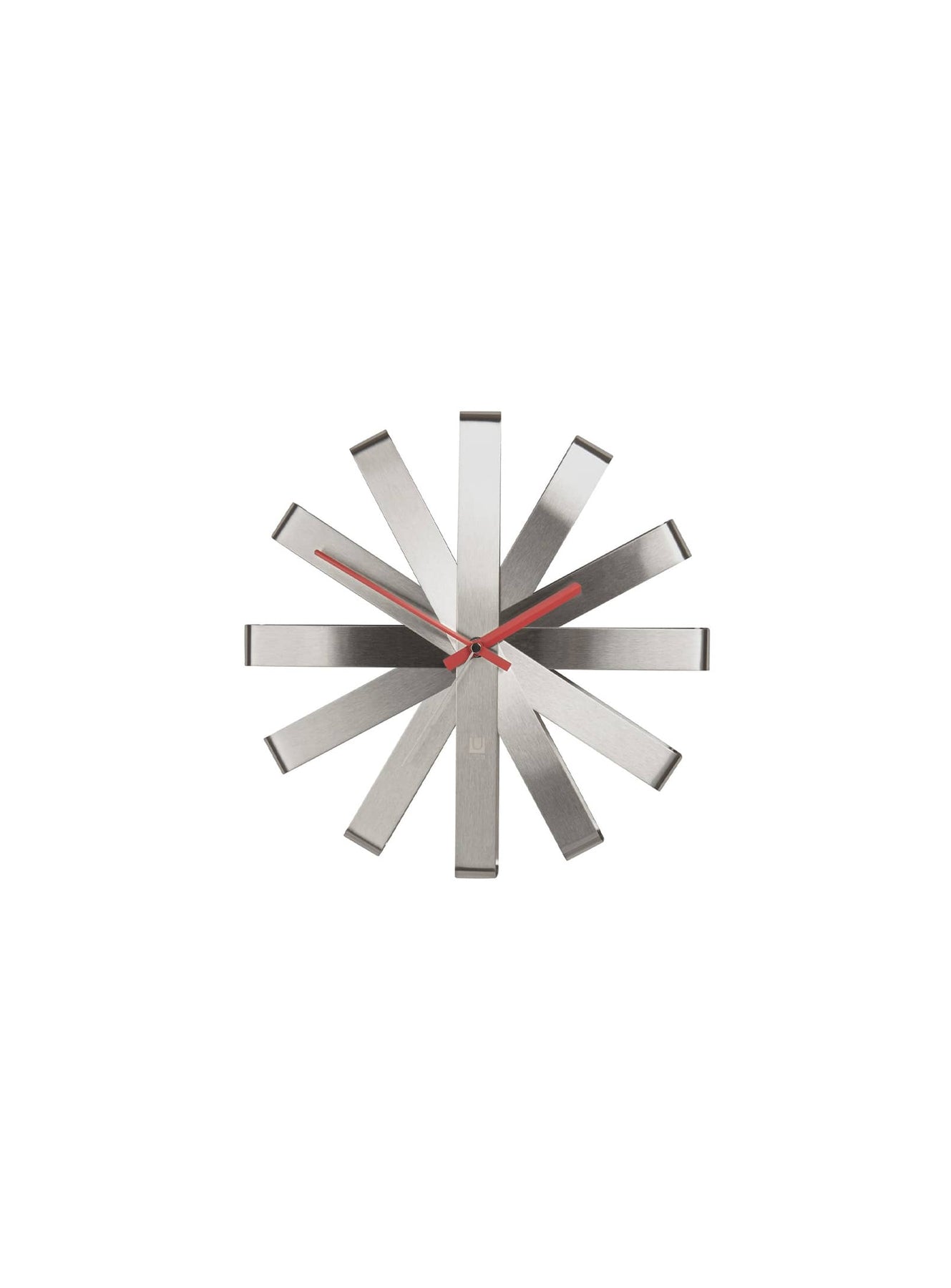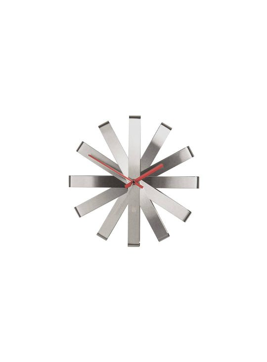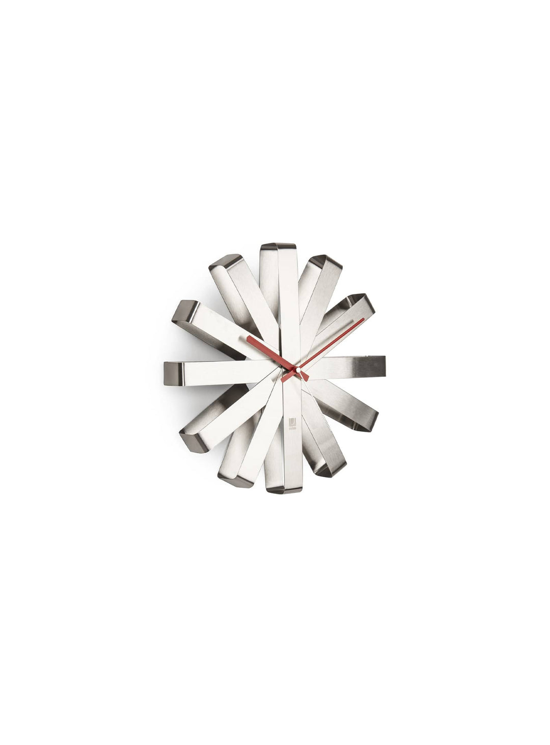 Apportez une touche moderne et minimaliste à votre intérieur avec l’horloge murale Ruban d'Umbra, une pièce design qui allie élégance et fonctionnalité. Son esthétique raffinée, inspirée de rubans d’acier entrelacés, en fait bien plus qu’un simple objet utilitaire : c’est un véritable élément décoratif qui sublime n’importe quel mur.